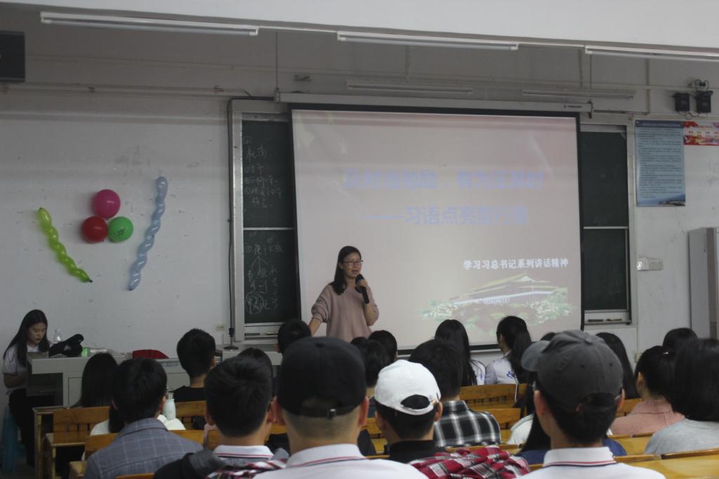 刘彩琼副书记以“及时当勉励,有为正其时”为主题,从谈理想、谈学习、谈价值观、谈创新和谈笃实五个方面进行讲述,带同学们回顾了近年来习近平总书记对青年的青春寄语和殷切期望,并要求同学们要牢记习总书记的谆谆教诲,莫负芳华之年,志存高远、脚踏实地、砥砺奋进,争做青年榜样,为实现中华民伟大复兴的中国梦贡献自己的力量。