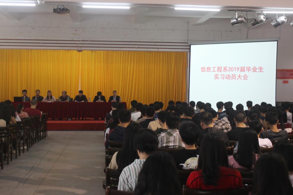 为了做好毕业生实习工作,信工系于12月27日在第一食堂三楼召开2019届毕业生实习动员大会。出席本次会议的有刘少明主任、刘彩琼副书记、李宗辉副主任、各专业教研室主任、各毕业班班主任及2019届全体毕业生,会议由刘少明主任主持。