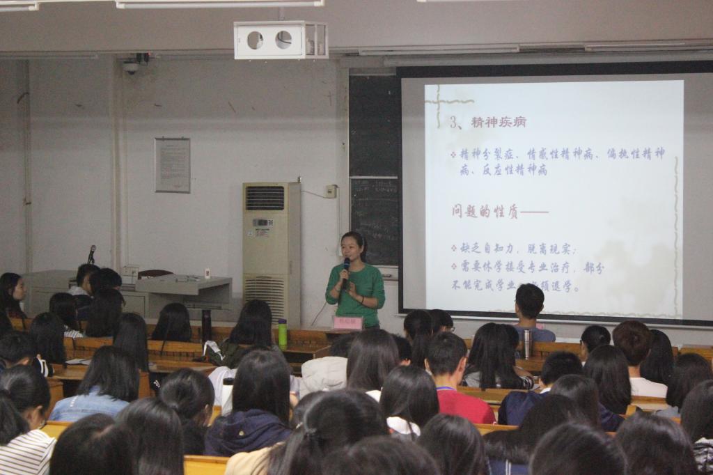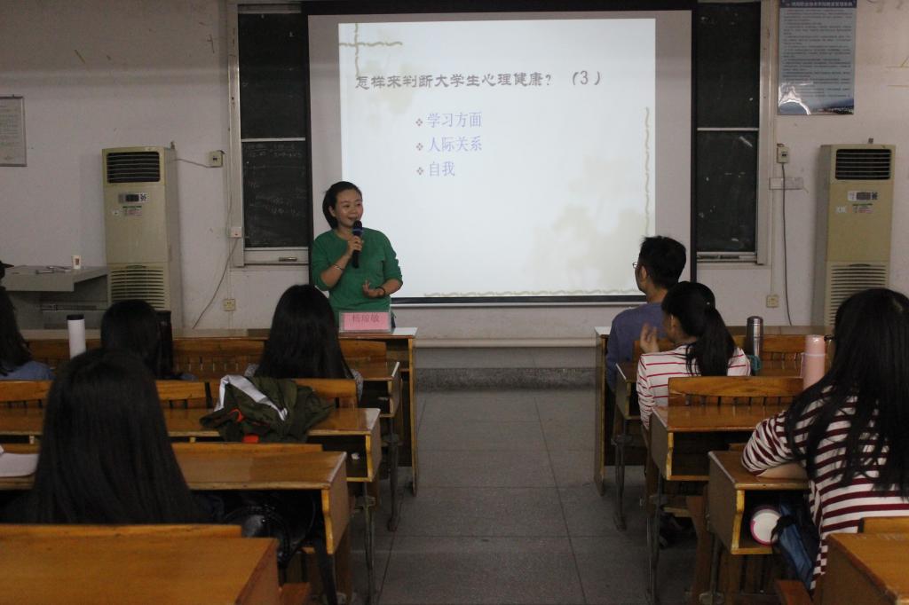 杨琼敏老师首先介绍和讲解了什么是心理问题;其次,就如何判断大学生心理健康,分别从是学习方面、人际关系和自我等三个方面进行分析;再次,杨老师详细介绍了大学生常见的心理问题;最后她还给大家分享了好些缓解压力的方法。杨琼敏老师以自己丰富的从业经验知识,结合具体案例,用生动形象的语言为大家奉献了一场精彩而令人难忘的讲座。