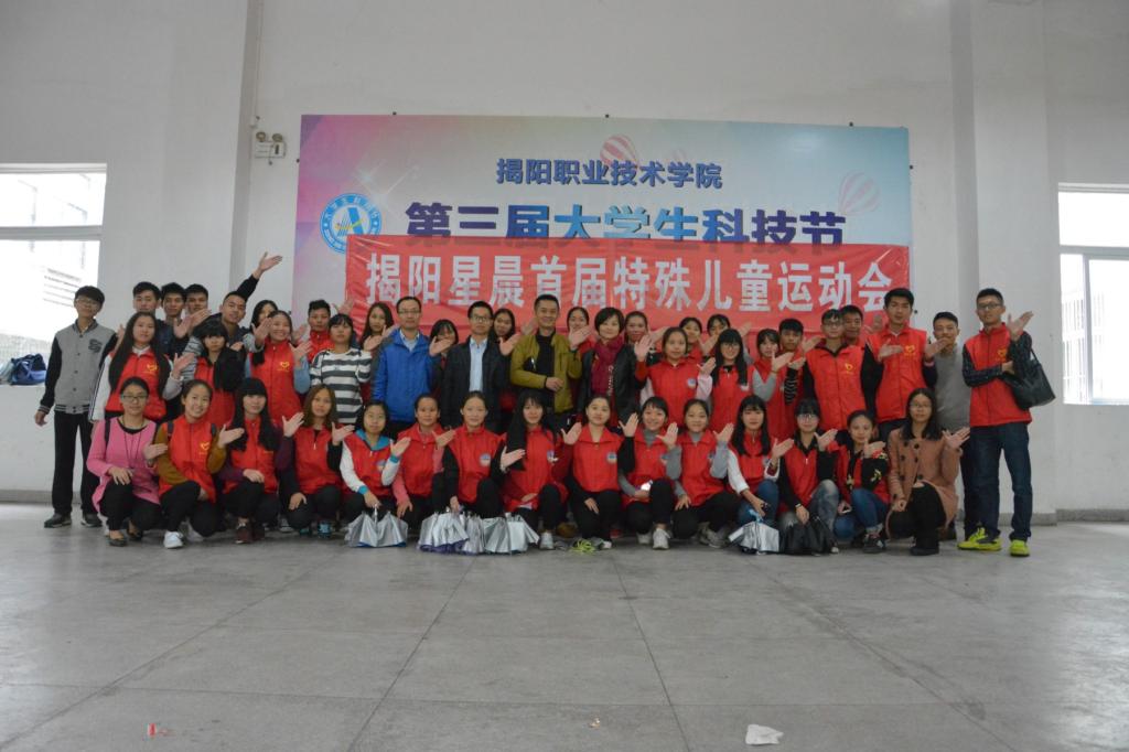 每年的12月3日是“国际残疾人日”,在这个特殊日子来临之际,为努力帮助自闭症儿童康复心智,融入社会,我院联合揭阳星晨自闭症儿童康复中心在我院举办特殊儿童运动会。11月26日上午,特殊儿童运动会开幕式在我院朝阳广场隆重举行,出席开幕式的领导、来宾有:榕城区区政府林少佳副区长、榕城区残疾人联合会姚庆生理事长、榕城区残疾人联合会钟奕华副理事长、揭阳星晨自闭症康复中心负责人和黄理事长、揭阳职业技术学院化学工程系党总支赖少坤书记、化学工程系陈敏杰老师等,参与活动的还有孩子家长、揭阳职业技术学院化学工程系蓝星志愿者、师范教育系学前教育部分同学、揭阳星晨自闭症儿童康复中心、榕东星晨幼儿园师生等。