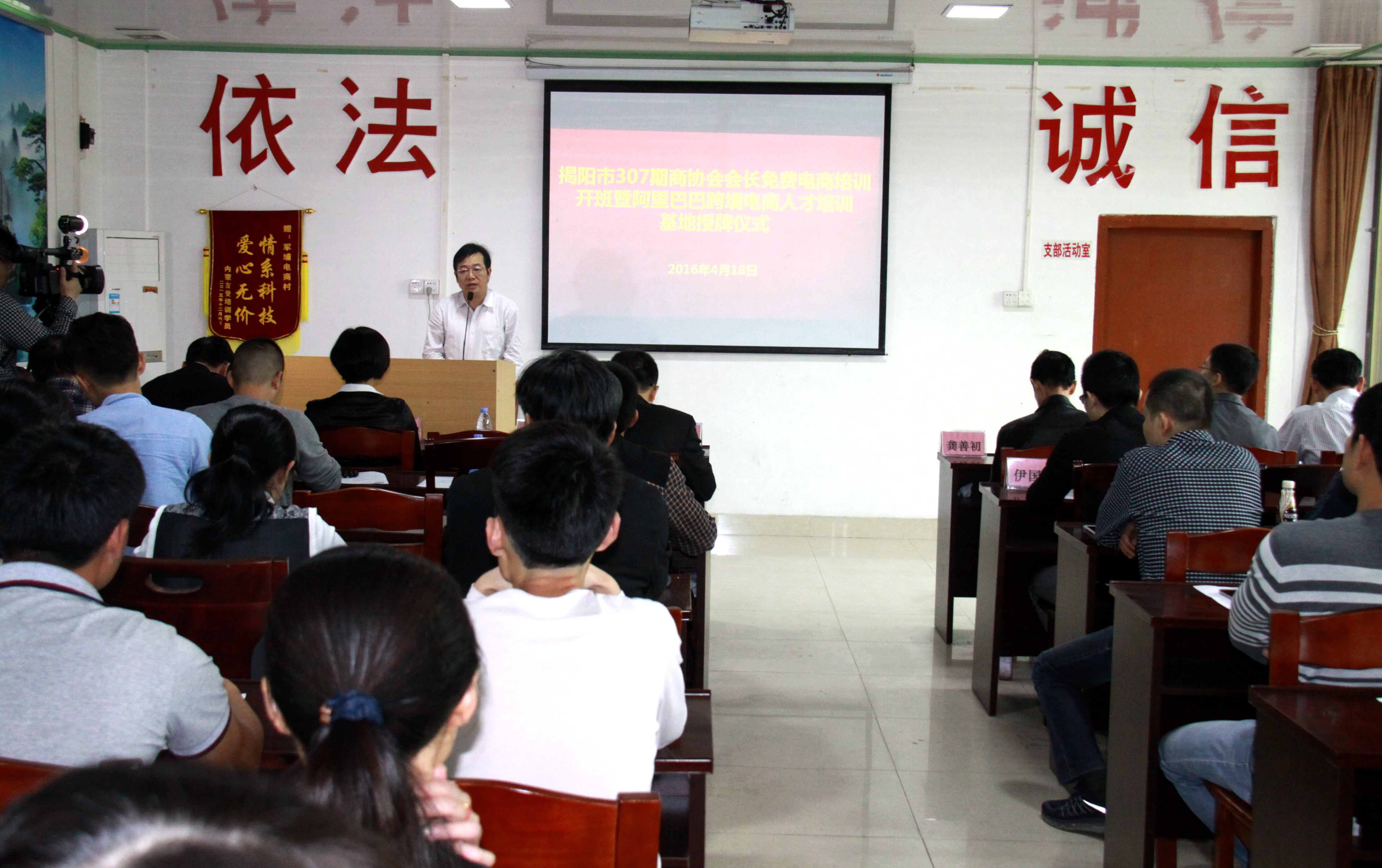 为贯彻落实揭阳市电子商务发展“8610”计划的要求,4月18日,我院在揭东区锡场镇军埔村举办揭阳市第307期商协会会长免费电商培训班。学院党委书记李文升、院长龚善初、副院长、电商创业学院院长黄李昌以及市、县有关部门领导出席了培训班开班仪式,来自我市17个商协会的相关负责人参加培训。