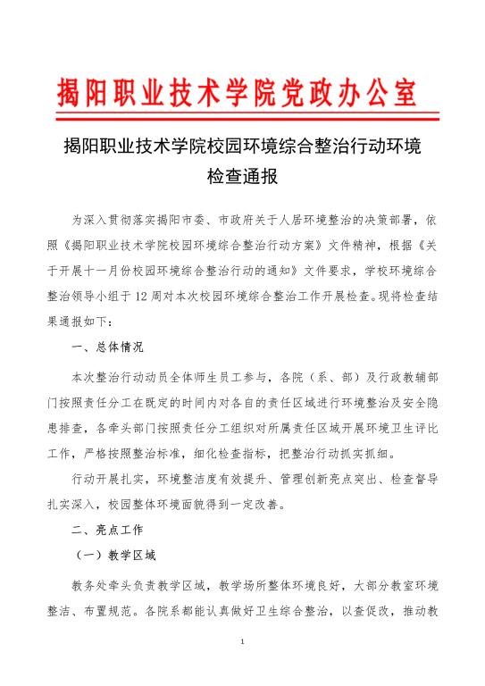 揭阳职业技术学院校园环境综合整治行动环境检查通报